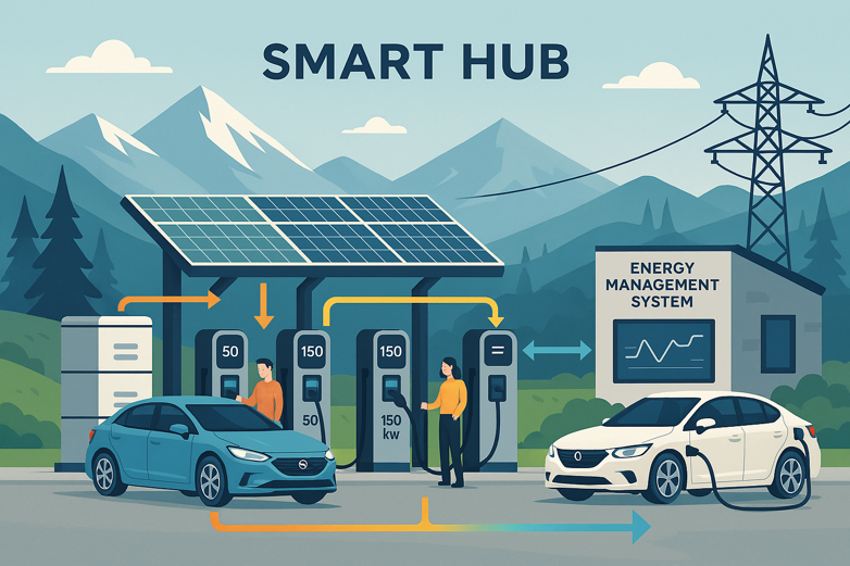 SMART-HUB Sistema innovativo di gestione energetica per hub di ricarica integrati con energia rinnovabile